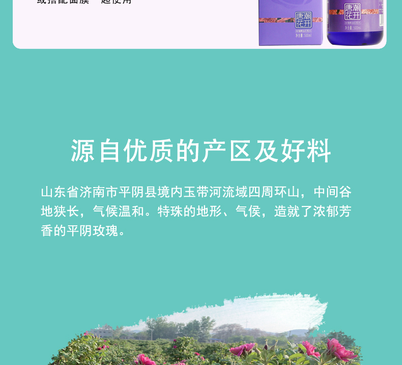 唐潮花開(kāi) 平陰玫瑰大瓶精油花苞水500ml爽膚補水